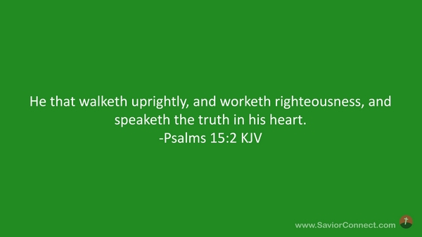 He that walketh uprightly, and worketh righteousness, and speaketh the truth in his heart. -Psalms 15:2 KJV