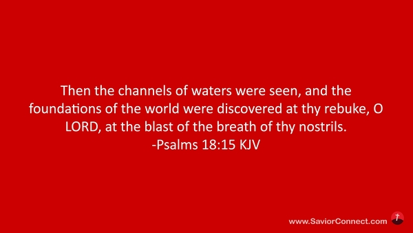 Then the channels of waters were seen, and the foundations of the world were discovered at thy rebuke, O LORD, at the blast of the breath of thy nostrils. -Psalms 18:15 KJV