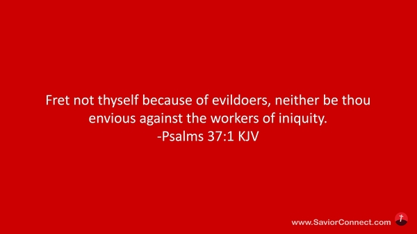 Fret not thyself because of evildoers, neither be thou envious against the workers of iniquity. -Psalms 37:1 KJV