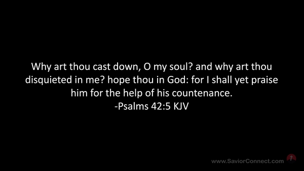 Why art thou cast down, O my soul? and why art thou disquieted in me? hope thou in God: for I shall yet praise him for the help of his countenance. -Psalms 42:5 KJV
