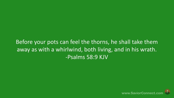 Before your pots can feel the thorns, he shall take them away as with a whirlwind, both living, and in his wrath. -Psalms 58:9 KJV