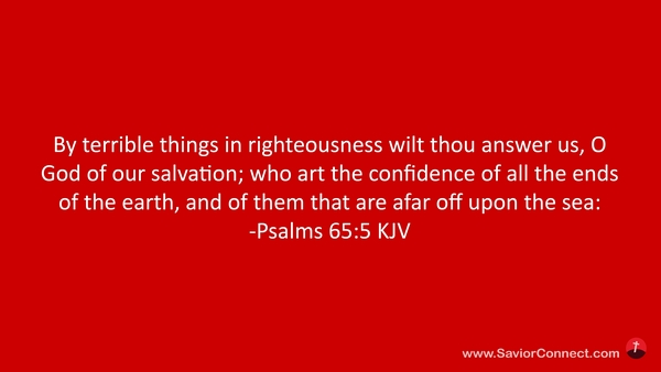 By terrible things in righteousness wilt thou answer us, O God of our salvation; who art the confidence of all the ends of the earth, and of them that are afar off upon the sea: -Psalms 65:5 KJV