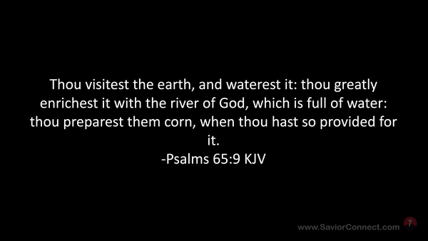 Thou visitest the earth, and waterest it: thou greatly enrichest it with the river of God, which is full of water: thou preparest them corn, when thou hast so provided for it. -Psalms 65:9 KJV