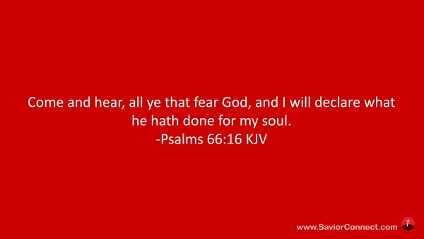 Come and hear, all ye that fear God, and I will declare what he hath done for my soul. -Psalms 66:16 KJV