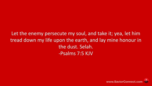 Let the enemy persecute my soul, and take it; yea, let him tread down my life upon the earth, and lay mine honour in the dust. Selah. -Psalms 7:5 KJV