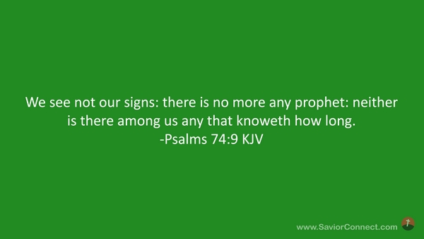 We see not our signs: there is no more any prophet: neither is there among us any that knoweth how long. -Psalms 74:9 KJV