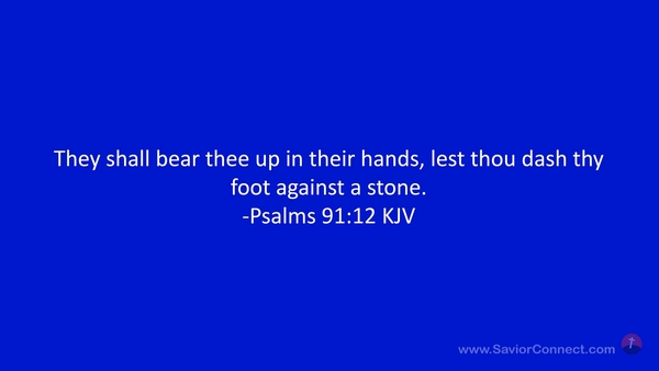They shall bear thee up in their hands, lest thou dash thy foot against a stone. -Psalms 91:12 KJV