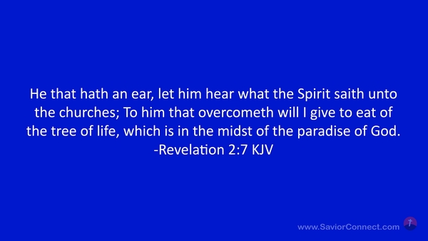 He that hath an ear, let him hear what the Spirit saith unto the churches; To him that overcometh will I give to eat of the tree of life, which is in the midst of the paradise of God. -Revelation 2:7 KJV