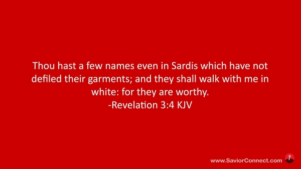 Thou hast a few names even in Sardis which have not defiled their garments; and they shall walk with me in white: for they are worthy. -Revelation 3:4 KJV
