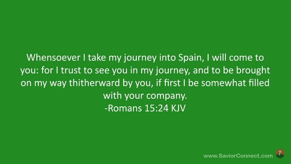 Whensoever I take my journey into Spain, I will come to you: for I trust to see you in my journey, and to be brought on my way thitherward by you, if first I be somewhat filled with your company. -Romans 15:24 KJV
