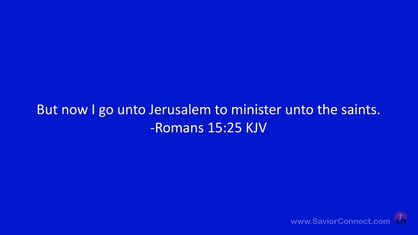 But now I go unto Jerusalem to minister unto the saints. -Romans 15:25 KJV