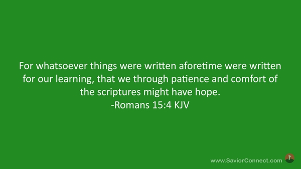 For whatsoever things were written aforetime were written for our learning, that we through patience and comfort of the scriptures might have hope. -Romans 15:4 KJV
