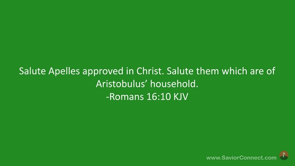 Salute Apelles approved in Christ. Salute them which are of Aristobulus' household. -Romans 16:10 KJV