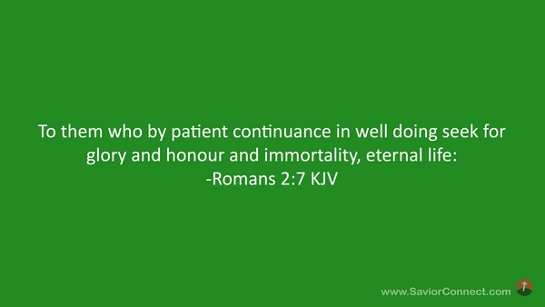 To them who by patient continuance in well doing seek for glory and honour and immortality, eternal life: -Romans 2:7 KJV