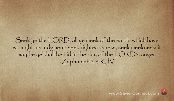 Seek ye the LORD, all ye meek of the earth, which have wrought his judgment; seek righteousness, seek meekness: it may be ye shall be hid in the day of the LORD's anger. -Zephaniah 2:3 KJV