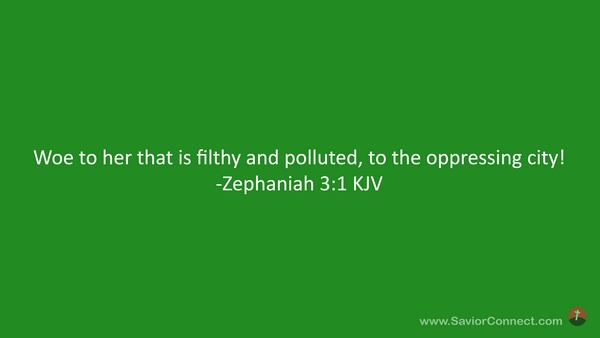 Woe to her that is filthy and polluted, to the oppressing city! -Zephaniah 3:1 KJV