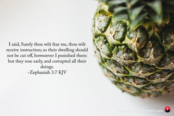 I said, Surely thou wilt fear me, thou wilt receive instruction; so their dwelling should not be cut off, howsoever I punished them: but they rose early, and corrupted all their doings. -Zephaniah 3:7 KJV