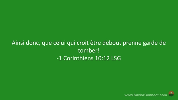 Ainsi donc, que celui qui croit être debout prenne garde de tomber! -1 Corinthiens 10:12 LSG