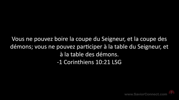 Vous ne pouvez boire la coupe du Seigneur, et la coupe des démons; vous ne pouvez participer à la table du Seigneur, et à la table des démons. -1 Corinthiens 10:21 LSG