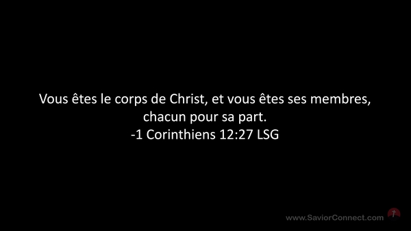 Vous êtes le corps de Christ, et vous êtes ses membres, chacun pour sa part. -1 Corinthiens 12:27 LSG