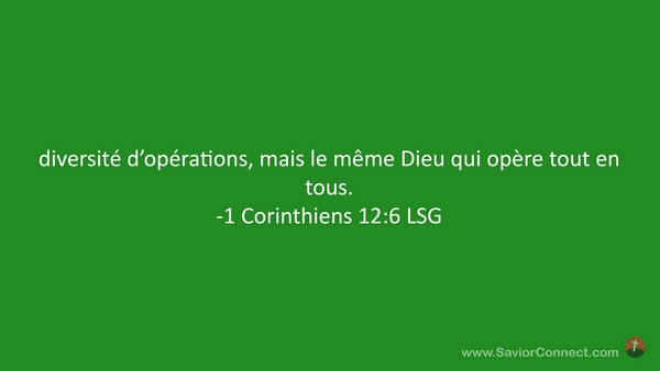 diversité d'opérations, mais le même Dieu qui opère tout en tous. -1 Corinthiens 12:6 LSG