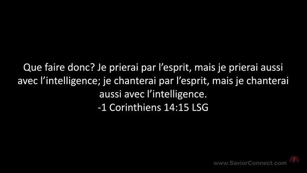 Que faire donc? Je prierai par l'esprit, mais je prierai aussi avec l'intelligence; je chanterai par l'esprit, mais je chanterai aussi avec l'intelligence. -1 Corinthiens 14:15 LSG