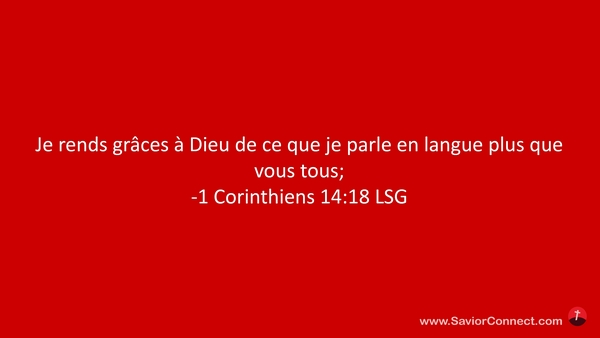 Je rends grâces à Dieu de ce que je parle en langue plus que vous tous; -1 Corinthiens 14:18 LSG
