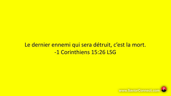 Le dernier ennemi qui sera détruit, c'est la mort. -1 Corinthiens 15:26 LSG