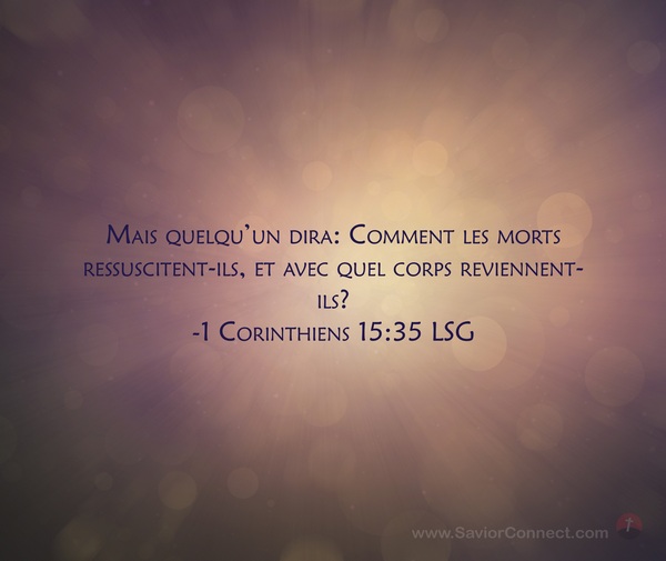 Mais quelqu'un dira: Comment les morts ressuscitent-ils, et avec quel corps reviennent-ils? -1 Corinthiens 15:35 LSG