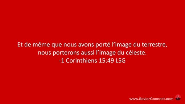 Et de même que nous avons porté l'image du terrestre, nous porterons aussi l'image du céleste. -1 Corinthiens 15:49 LSG