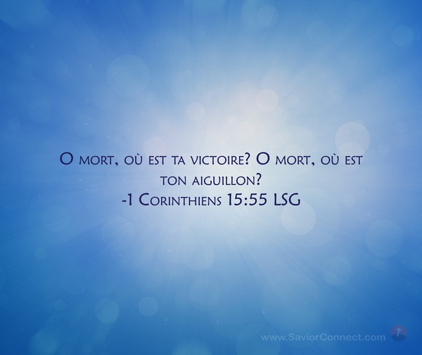 O mort, où est ta victoire? O mort, où est ton aiguillon? -1 Corinthiens 15:55 LSG