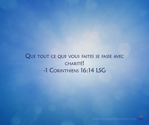Que tout ce que vous faites se fasse avec charité! -1 Corinthiens 16:14 LSG