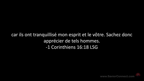 car ils ont tranquillisé mon esprit et le vôtre. Sachez donc apprécier de tels hommes. -1 Corinthiens 16:18 LSG