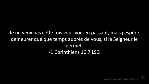Je ne veux pas cette fois vous voir en passant, mais j'espère demeurer quelque temps auprès de vous, si le Seigneur le permet. -1 Corinthiens 16:7 LSG
