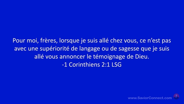 Pour moi, frères, lorsque je suis allé chez vous, ce n'est pas avec une supériorité de langage ou de sagesse que je suis allé vous annoncer le témoignage de Dieu. -1 Corinthiens 2:1 LSG