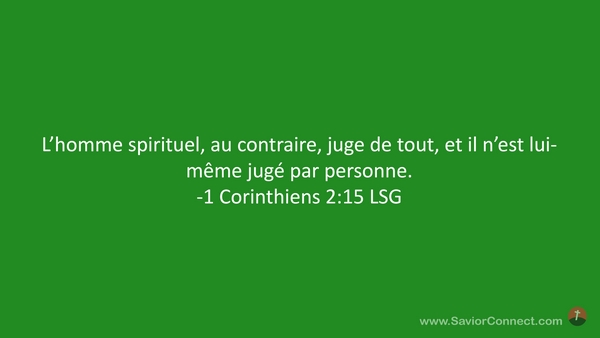 L'homme spirituel, au contraire, juge de tout, et il n'est lui-même jugé par personne. -1 Corinthiens 2:15 LSG