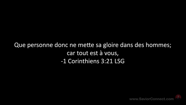 Que personne donc ne mette sa gloire dans des hommes; car tout est à vous, -1 Corinthiens 3:21 LSG