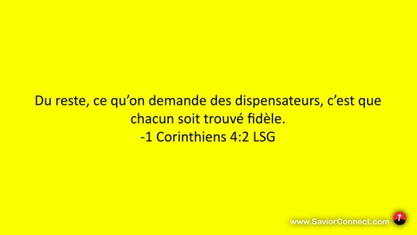 Du reste, ce qu'on demande des dispensateurs, c'est que chacun soit trouvé fidèle. -1 Corinthiens 4:2 LSG