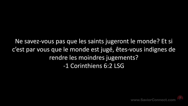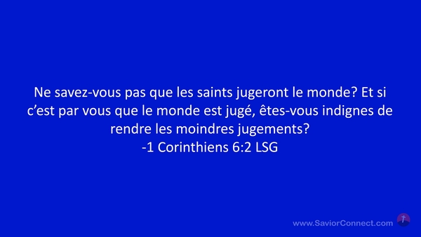 Ne savez-vous pas que les saints jugeront le monde? Et si c'est par vous que le monde est jugé, êtes-vous indignes de rendre les moindres jugements? -1 Corinthiens 6:2 LSG