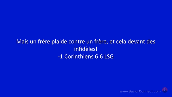 Mais un frère plaide contre un frère, et cela devant des infidèles! -1 Corinthiens 6:6 LSG