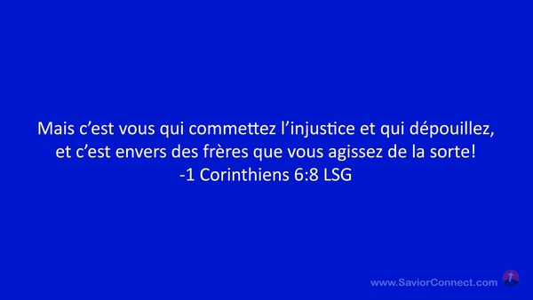 Mais c'est vous qui commettez l'injustice et qui dépouillez, et c'est envers des frères que vous agissez de la sorte! -1 Corinthiens 6:8 LSG