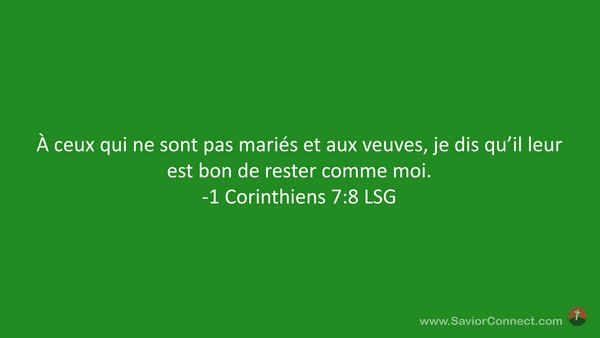 À ceux qui ne sont pas mariés et aux veuves, je dis qu'il leur est bon de rester comme moi. -1 Corinthiens 7:8 LSG