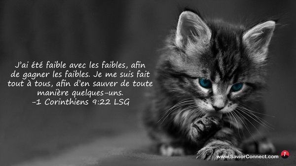 J'ai été faible avec les faibles, afin de gagner les faibles. Je me suis fait tout à tous, afin d'en sauver de toute manière quelques-uns. -1 Corinthiens 9:22 LSG