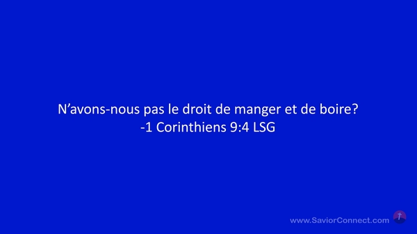 N'avons-nous pas le droit de manger et de boire? -1 Corinthiens 9:4 LSG