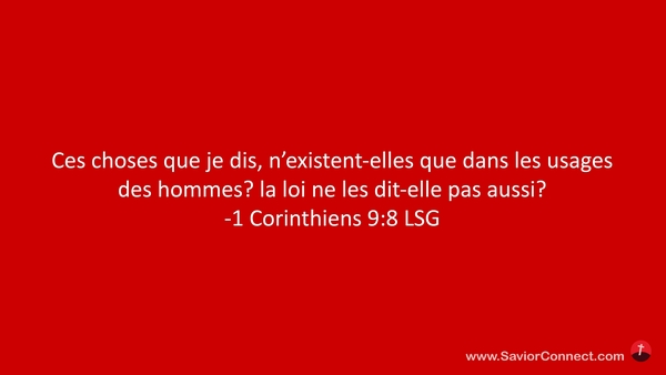Ces choses que je dis, n'existent-elles que dans les usages des hommes? la loi ne les dit-elle pas aussi? -1 Corinthiens 9:8 LSG