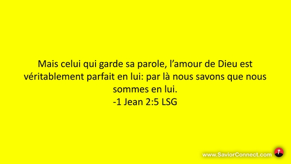 Mais celui qui garde sa parole, l'amour de Dieu est véritablement parfait en lui: par là nous savons que nous sommes en lui. -1 Jean 2:5 LSG