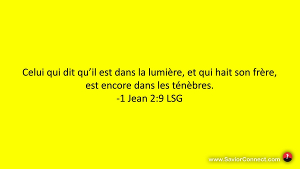 Celui qui dit qu'il est dans la lumière, et qui hait son frère, est encore dans les ténèbres. -1 Jean 2:9 LSG
