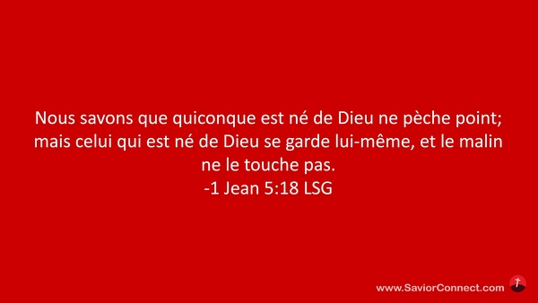 Nous savons que quiconque est né de Dieu ne pèche point; mais celui qui est né de Dieu se garde lui-même, et le malin ne le touche pas. -1 Jean 5:18 LSG