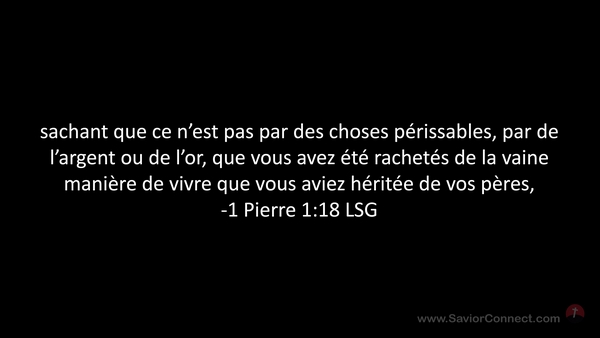 sachant que ce n'est pas par des choses périssables, par de l'argent ou de l'or, que vous avez été rachetés de la vaine manière de vivre que vous aviez héritée de vos pères, -1 Pierre 1:18 LSG