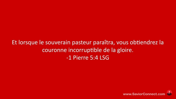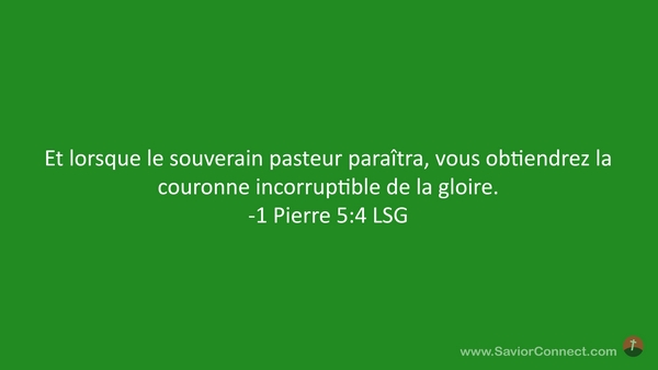 Et lorsque le souverain pasteur paraîtra, vous obtiendrez la couronne incorruptible de la gloire. -1 Pierre 5:4 LSG